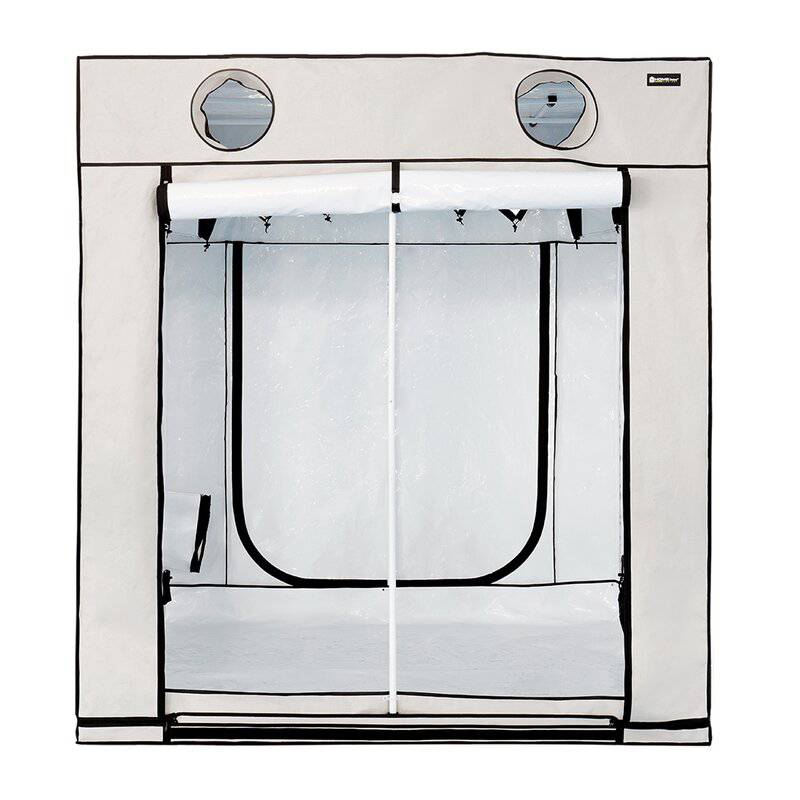 Die HOMEbox® Ambient Q200+ bietet mit einer Größe von 200 x 200 x 220 cm und einer Anbaufläche von 4 m² ideale Wachstumsbedingungen. Dank des optimierten Designs und der robusten Konstruktion ist sie 20 cm höher und von allen Seiten zugänglich. Die bodennahen Seitenfenster und das stabile 22 mm Rahmengestänge gewährleisten maximale Flexibilität und Stabilität. Mit einer PAR+ optimierten Innenbeschichtung für besseres Pflanzenwachstum und zahlreichen Tubes für eine effiziente Belüftung eignet sich die Q200+ perfekt für den professionellen Einsatz. Die Box ist mit einem abnehmbaren, wasserdichten Bodenelement ausgestattet und bietet eine maximale Belastung von bis zu 150 kg.